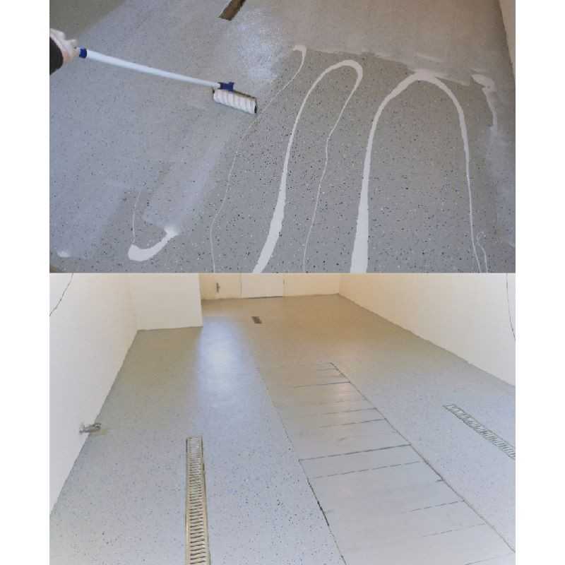 Voor nieuwe gepolijste betonen vloeren, moet de curing compound vooreerst verwijderd worden door middel van een curing remover of door grid blasting.