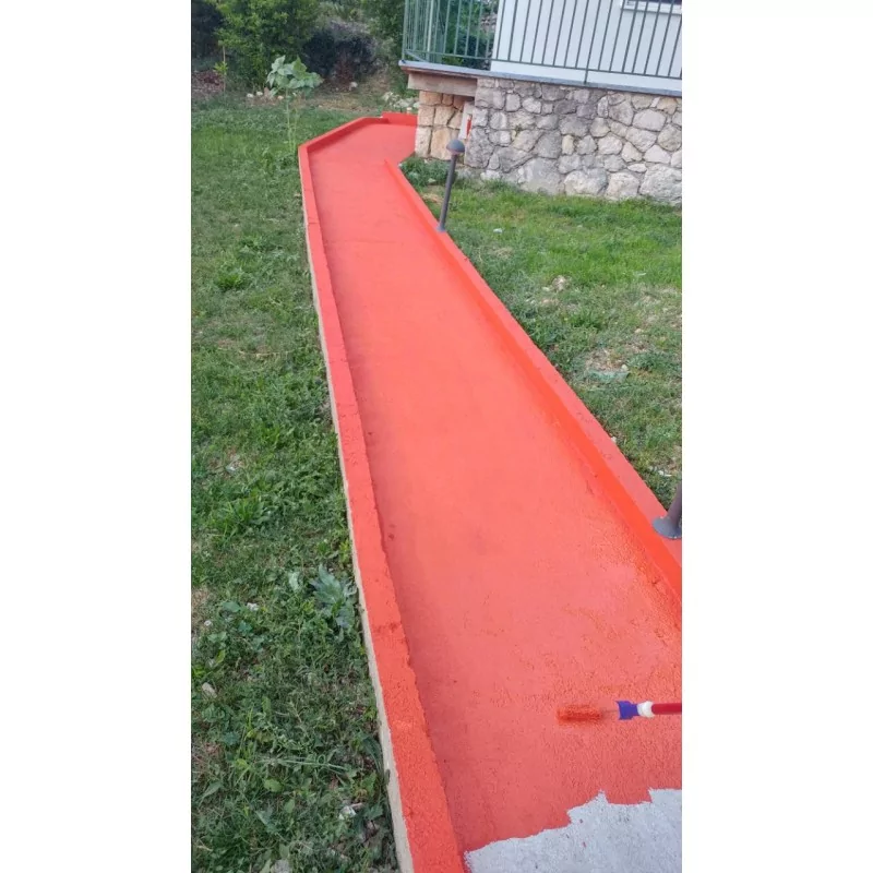 RD-Colortrack is een sneldrogende ééncomponentige verf op waterbasis, speciaal geformuleerd voor het coaten van cementtegels, beton-, asfalt- en bitumenvloeren. Het is UV- en weerbestendig en gebaseerd op acrylharsen die een uitstekende flexibiliteit, hoge mechanische weerstand en hoge weerstand tegen vochtigheid bieden. Dankzij zijn speciale formulering is de film enigszins ruw en antislip, wat zorgt voor een goede grip tijdens het lopen of rennen.